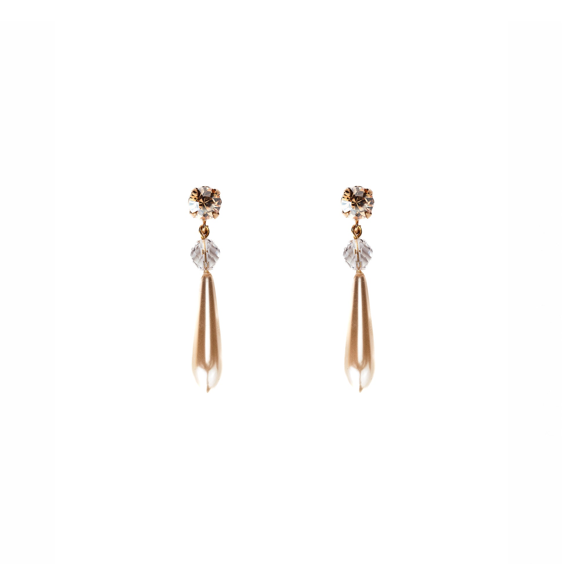 Dieser edle Ohrstecker in Gold mit feinem Kristall in Golden Shade, Glasperle in Crystal und Tropfenperle in Creme harmoniert wunderbar zu Brautroben, klassischen Outfits sowie auch zur Tracht.