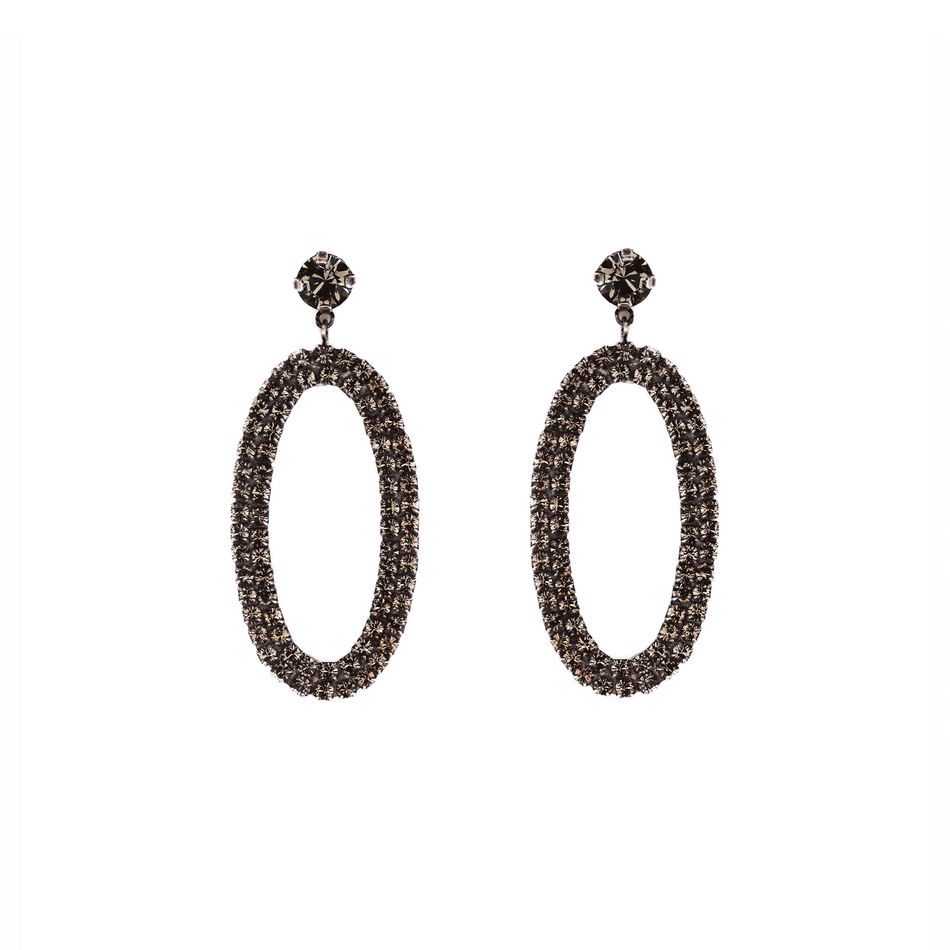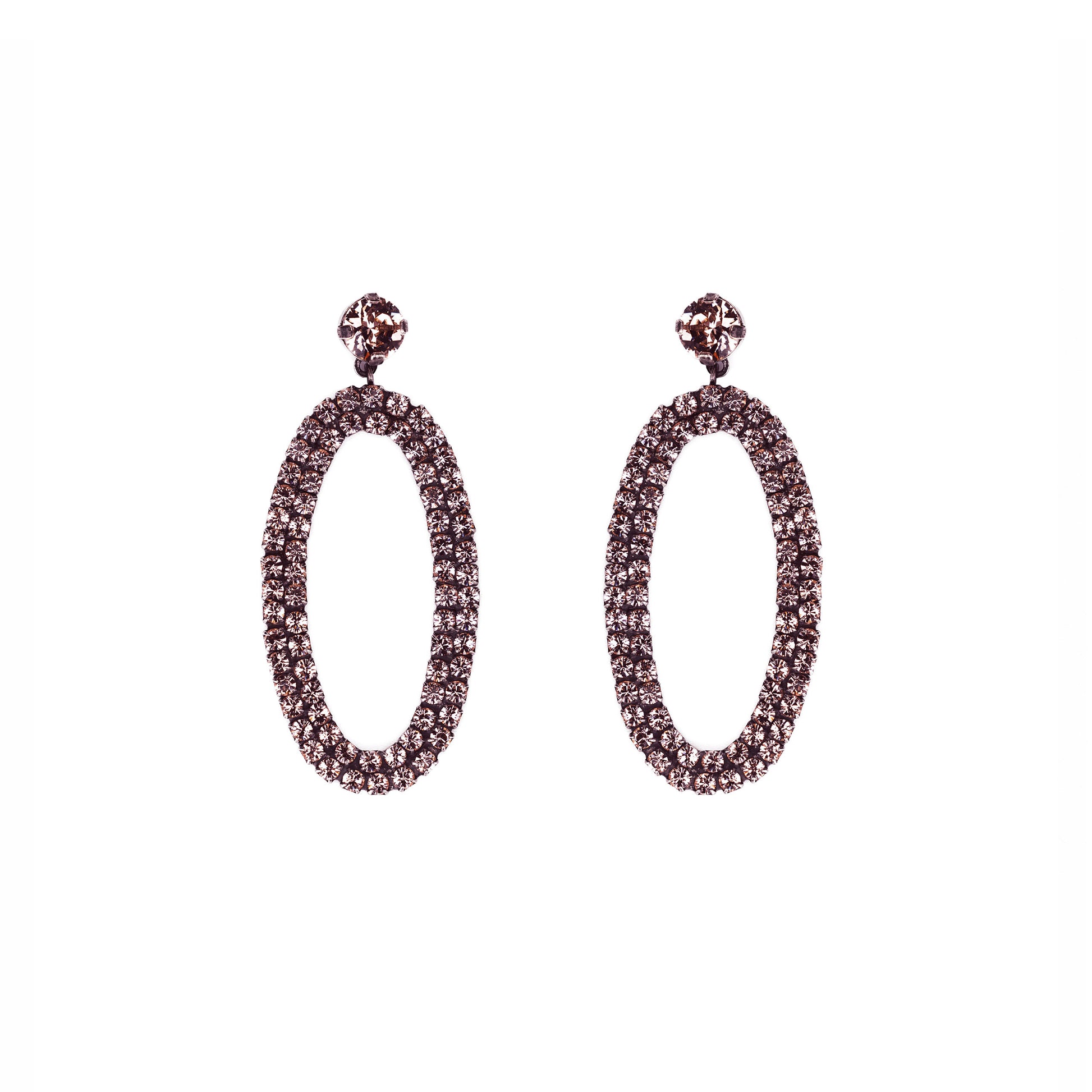 This delicate stud earring in an elegant oval shape with exquisite crystals set in smoky grey, rose or crystal is a wonderful eye-catcher for any designer costume as well as for classic outfits and ball gowns.